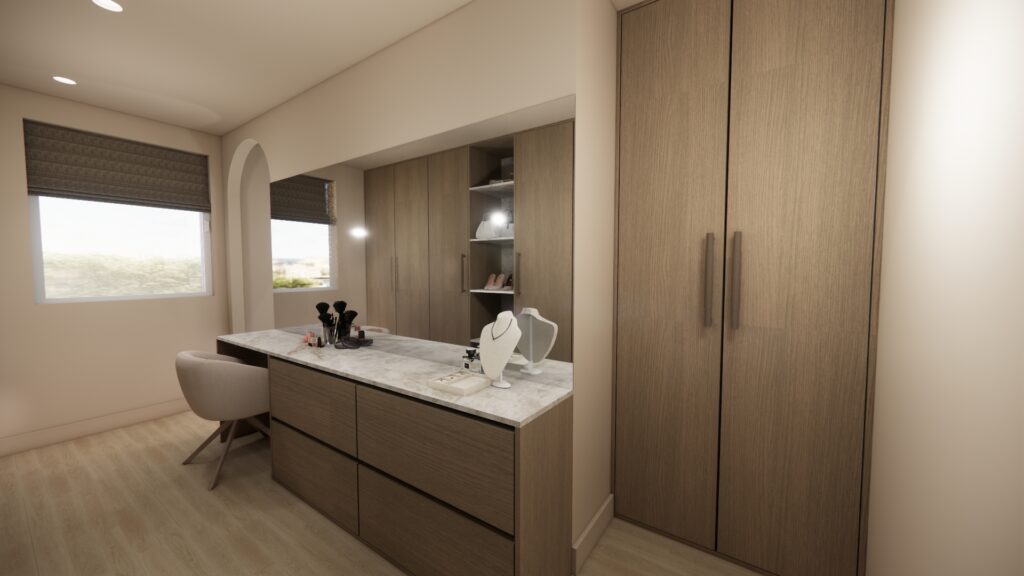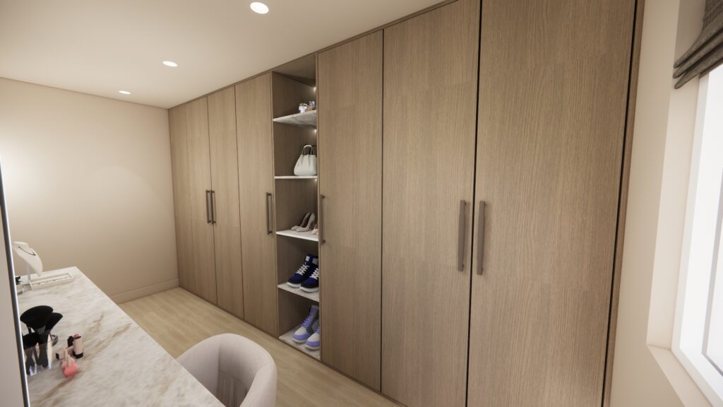 Voor dit prachtige nieuwbouwproject in het Westland mocht ik een volledig interieuradvies verzorgen voor zowel de begane grond als de eerste verdieping. De bewoners hadden de wens voor een licht en warm interieur dat rust en luxe uitstraalt. Graag wilden zij dat het een geheel vormt. Om dit te realiseren, heb ik gekozen voor een neutraal kleurenpalet met gebruik van natuurlijke materialen. Als finishing touch zijn subtiele bronzen accenten toegevoegd, die zorgen voor extra warmte en een verfijnde uitstraling.